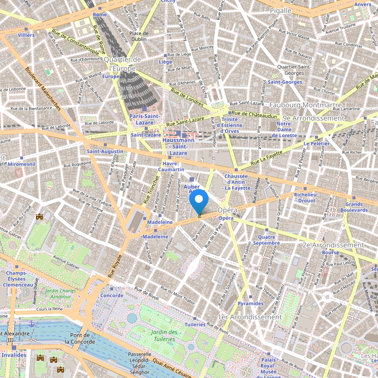 Месторасположение: Отель расположен во Франции, в самом центре Парижа, недалеко от универмага "Галерея Лафайет" и великолепной Оперы Гарнье.   Количество номеров: 42 номера   Типы номеров: - Классический номер - Номер Делюкс - Классический номер   Описание номеров: - кондиционер - ванная комната - фен - туалет - телефон - телевизор   Инфраструктура отеля: - вестибюль с красивой, украшенной витражами крышей - цветущий дворик   Сервис: - доставка прессы - лифт - прачечная - химчистка - услуги по глажению одежды - факс - ксерокопирование - сейф - парковка - камера хранения багажа   Развлечения и спорт: - пешие прогу