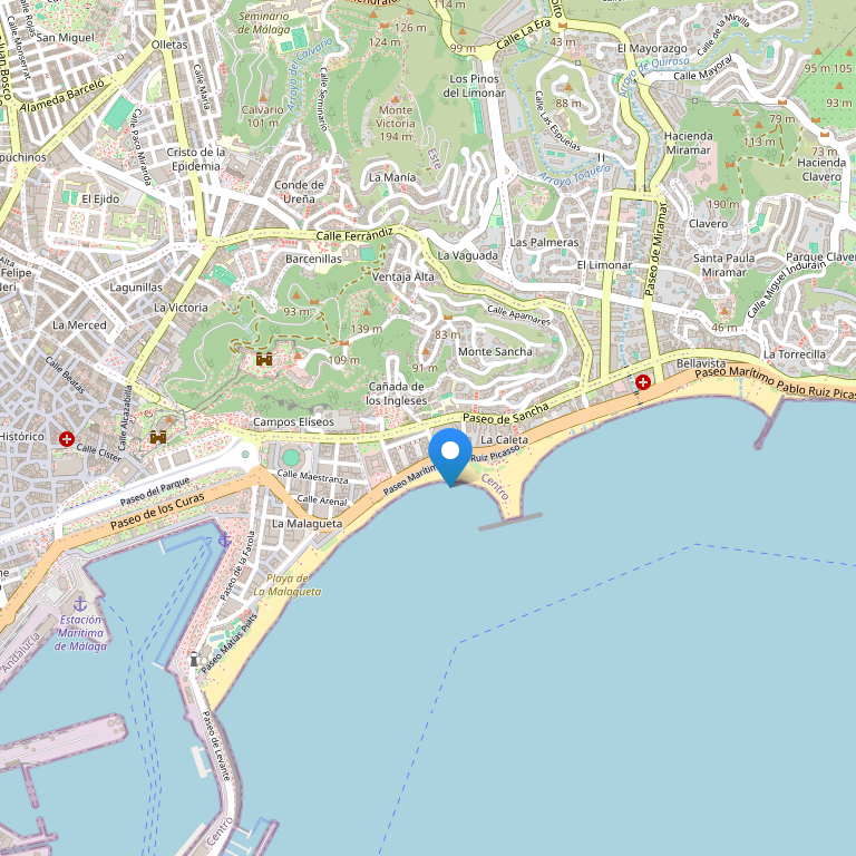 Здание парадора построено из камня по соседству с замком Гибралфаро, что легко позволяет его гостям добраться до города Малага, а также воспользоваться бесчисленными развлечениями и заняться спортом (гольф, теннис и т.д.), которые предлагает расположенный рядом Парадор del Golf.
