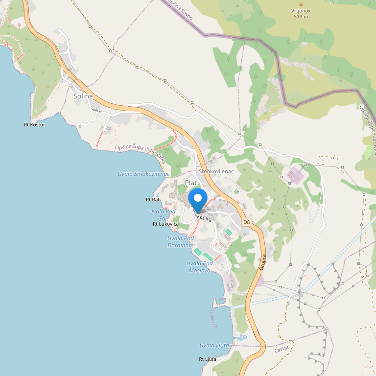 Отель находится в местечке Плат на самом берегу моря и окружен буйной средиземноморской растительностью. Составляет единый комплекс с "VILLAS PLAT". Был полностью реконструирован в 2000 году. 10 км от аэропорта. До Дубровника и Цавтата ходит катер - 35 мин., автобус - 30 мин.