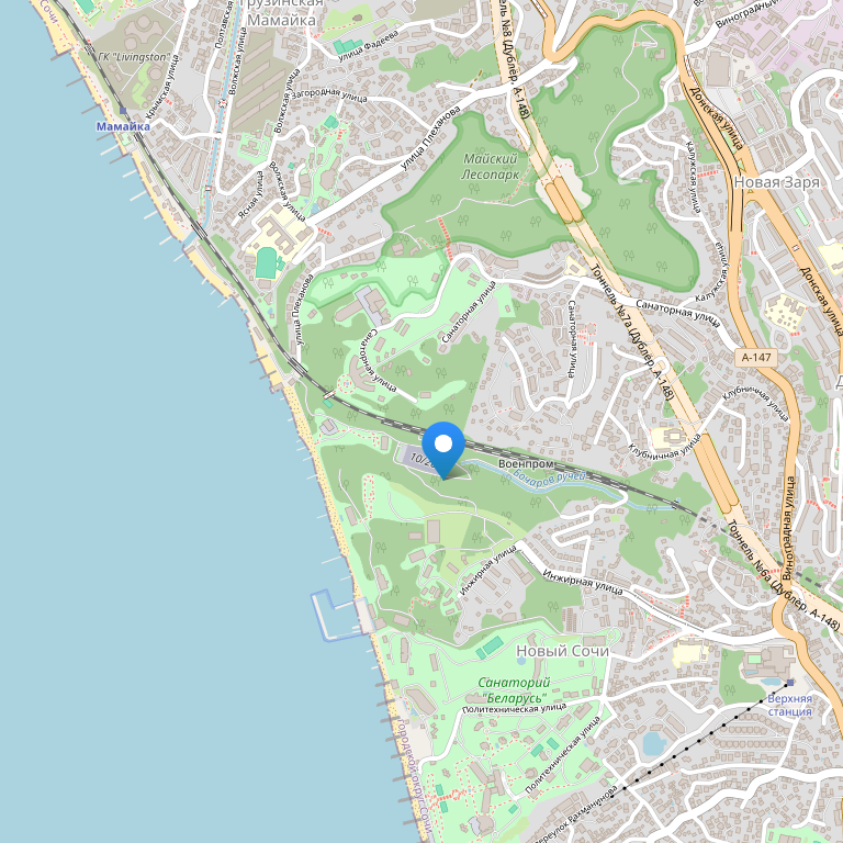 Гостиница "Империя" (Imperiya) находится в тихом, спокойном районе г. Сочи Мамайке. Расположена в 6 км от ж/д вокзала г. Сочи, в 8 км от центра г. Сочи.