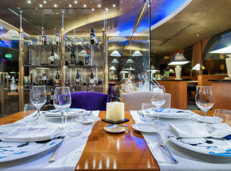 It features a very picturesque visible wine cellar, built in glass, which creates a refined and exclusive atmosphere.