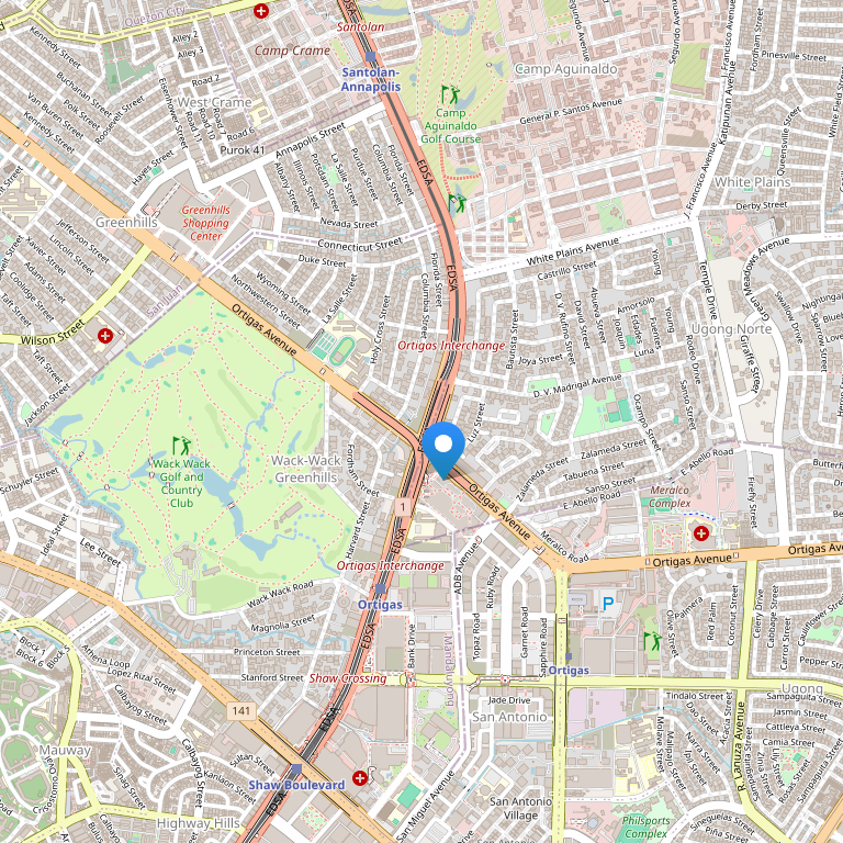Отель находится на углу Ortigas Avenue и ABD Avenue в районе Quezon. Удобное расположение отеля подойдет как для отдыха, так и для деловых людей. За несколько минут на машине можно добраться до делового центра - Макати. Также рядом с отелем расположено множество развлекательных центров и ночных клубов. Отель стоит рядом с одним из крупных торговых центров - Robinsons Shopping Mall. Международный аэропорт находится в 15 км от отеля.