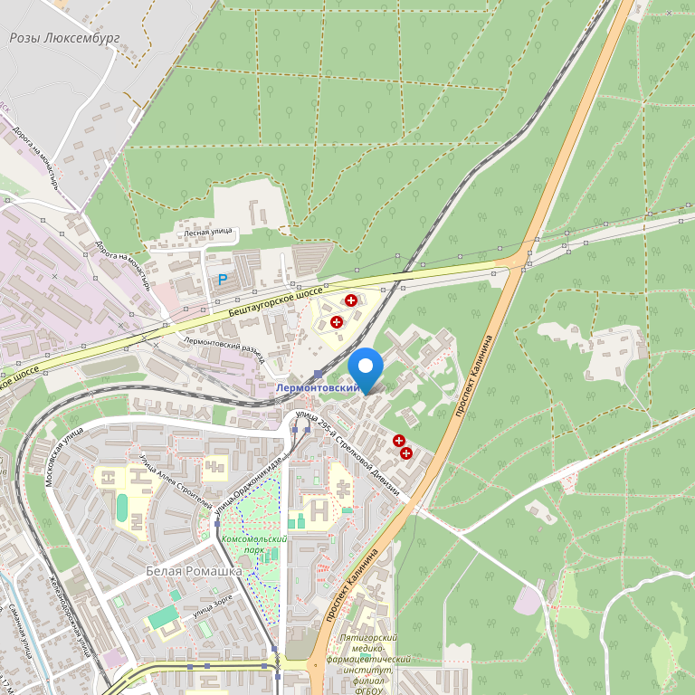 Санаторий расположен в городе Пятигорске на живописном северо-западном склоне горы Машук у исторического места дуэли Михаила Юрьевича Лермонтова и занимает лесопарковую зону площадью 4,84 га.