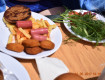Еда не слишком разнообразна, но голодными вы не будете. Хватает всем.Еда и возле моря в...