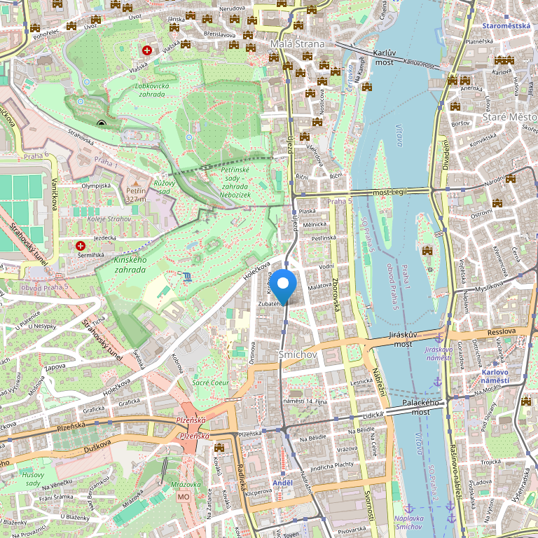 Отель The Red&Blue расположен в центральной части Праги напротив красивейшего Сада Кинских в районе Малого Города, неподалеку от известных пражских достопримечательностей.