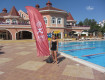 Территория большая зеленая, есть домик для кошек, бассейны пляж, всё довольно чистое убранное.