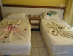 1.Сам номер вроде бы ничего...но мебель старая и ковролин бежевого цвета давно перестал быть им..какие то пятна по всему покрытию( видимо от вина, которые уже не отмываются)