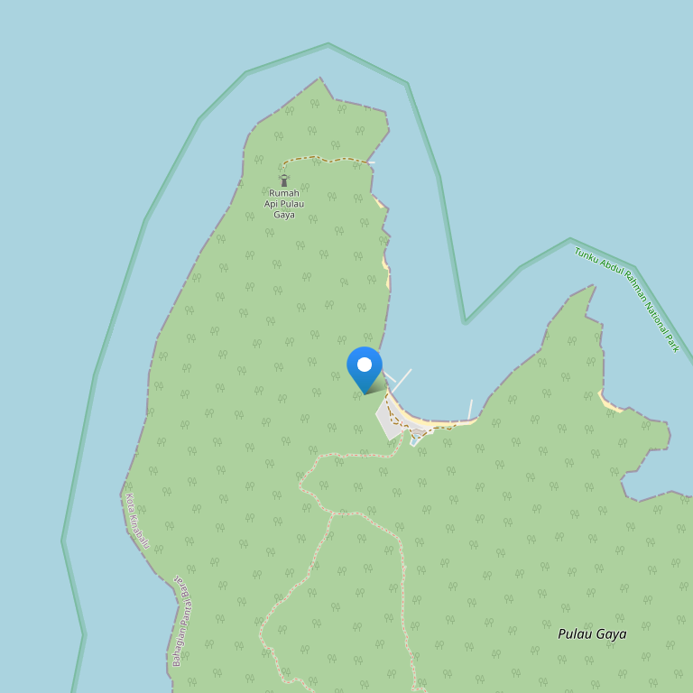 Отель состоит из 48 деревянных вилл и расположен вблизи кораллового рифа на уединенном острове Пулау Гайя, который является частью Национального Морского Заповедника «Тунку Абдул Рахман». До отеля можно добраться на лодке от пристани Кота-Кинабалу за 15 минут.