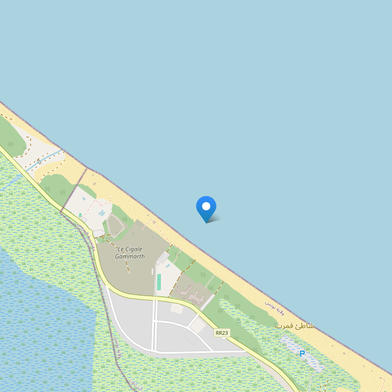 Отель расположен на средиземноморском побережье в 20 км от центра г. Тунис, в 80 км от центра г. Хаммамет.