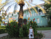 Красивая чистая и большая территория. С пальмами, цветами, лужайками.