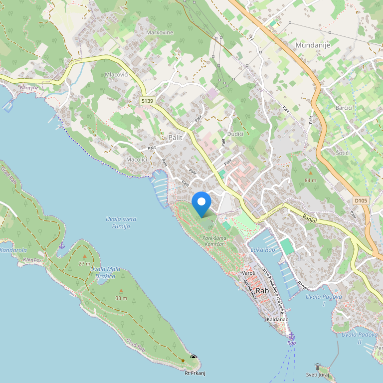 Отель расположен в Хорватии, на острове Раб.