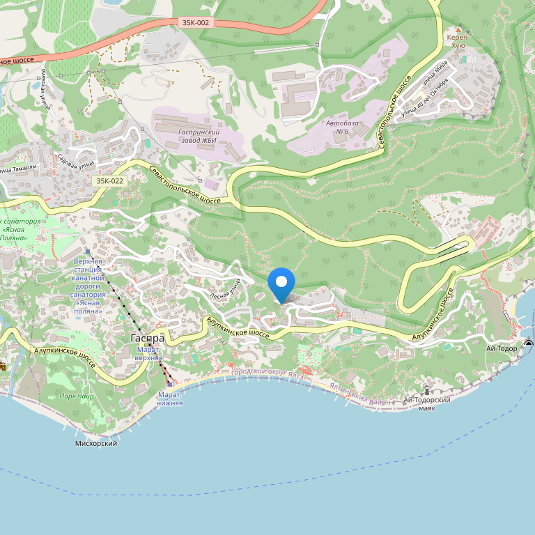 Санаторий "Родина" расположен в 10 км от г. Ялта в курортном местечке Мисхор на берегу Черного моря.