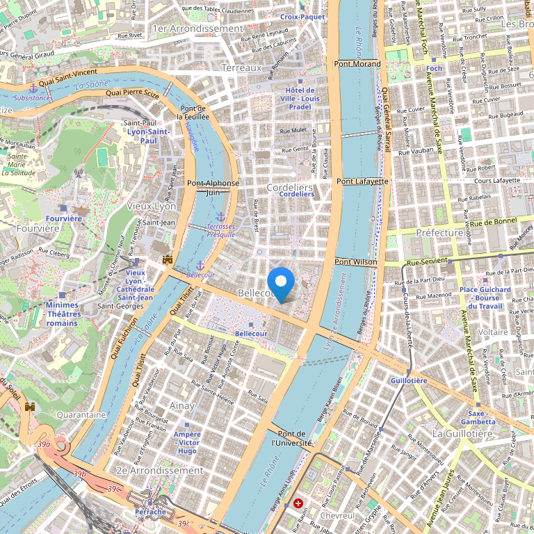 Citadines Lyon Presqu'ile находится в прекрасном месте, в центре города, на полуострове между реками Роны и Соны, в самом сердце района Пресквил. В 5 минутах от отеля находится Place Bellecour, крупнейшая пешеходная площадь в Европе и лабиринт улиц квартала Сен-Жан, который внесен в список Всемирного наследия ЮНЕСКО, а также Музей изящных искусств (Музей изобразительных искусств). Удобное расположение в 400 мерах от станции метро Bellecour и в 350 мерах от станции Cordeliers Bourse, облегчит гостям осмотр и изучение города.