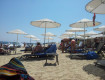 Пляж с лежаками,...
