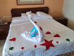 Мы приехали в отель молодожёнами, нам дали очень уютный и просторный номер (хотя при бронировании выбирали стандарт). Понравилась комплектация номера: есть большой комод, шкаф (где достаточное количество вешалок), телевизор, удобный диванчик, большая кровать с хорошим матрасом, приличная ванная комната со всеми принадлежностями. Персонал отеля поздравил нас при заселении - в номере...