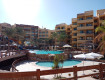 В Zahabia довольно большая территория, много корпусов по 3-5 этажей, три бассейна - два смежных, один отдельный, всякие там дорожки, мостики, бары, газоны, детская площадка. Ну в общем красиво. Территорию...