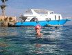 Пляж - бухта. На ближней его части спокойный пляж, где нет морских ежей и кораллов, не глубоко - идеален для детей. Если пройти метров 200 подальше (слева есть тропинка к пристани, откуда уезжают по утрам дайверы), увидите другую часть пляжа (зонтики и лежаки на ней тоже есть). С этой части открывается...