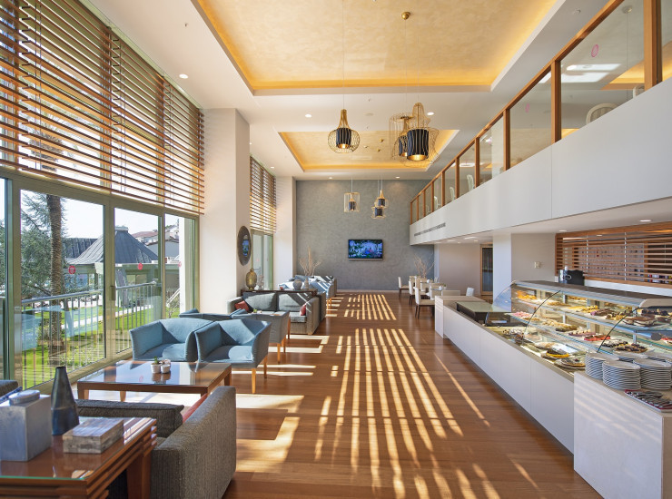 главный ресторан рассчитан на 750 человек (крытый, с кондиционером, летняя терраса, детское меню, диетическое меню, детские стулья), лобби-бар (24 часа), бар у бассейна (10:00-24:00), бар на пляже (10:00-00:00), бар на пирсе (безалкогольные напитки), диско-бар (23:00-02:00), снек ресторан(12:00-17:00), Burger Inn (12:30-14:00), кондитерская (12:00-19:00) и др.3 ресторана A la Carte: интернациональный, турецкий, дальневосточный - бесплатно, по предварительной резервации.