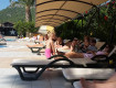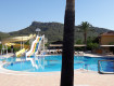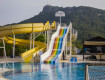 Территория отеля не большая, но очень зеленая. Красивые виды на горы. Есть два бассейна, один из них для маленьких детишек. Две горки, работают в определенные часы. Площадка воркаут и волейбольная. А еще гуляют кролики и много кошек.