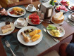 Завтраки :большой выбор сыра,колбасы,овощи,зелени много, возле ресторана каждый день жарили омлет , яичницу,блинчики.Чай в большом ассортименте,кофе. В общем очень выбор большой булочки,йогурты и т.д.