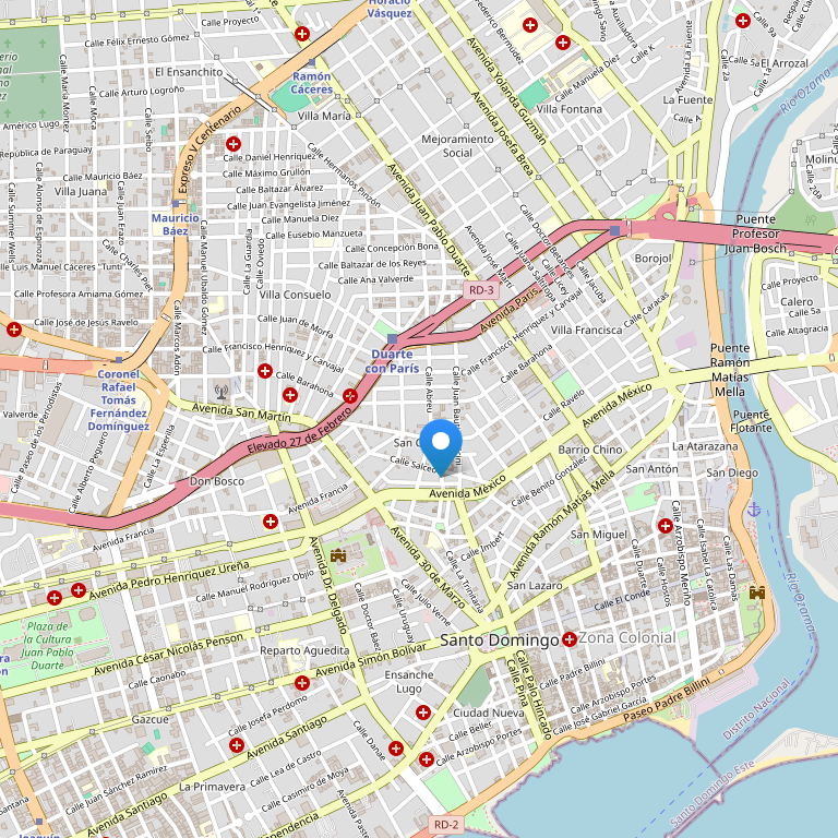 Отель находится в 25 км от международного аэропорта Las Américas, в Колониальной зоне Санто-Доминго, на улице Calle Duarte, в центре всех исторических и культурных достопримечательностей столицы.
