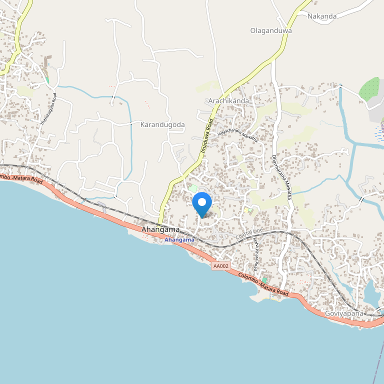 Расстояние от отеля до центра города составляет 2 км, до автобусной остановки - 2 км, до ж/д станции - 2 км, до коломбо - 130 км, до международного аэропорта Коломбо - 160 км.
