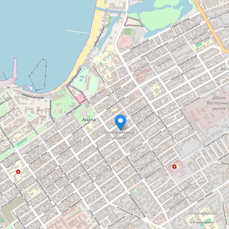 Месторасположение: Гостиница  находится в тихом тенистом месте, в центре города Анапа, в 5 минутах ходьбы от центрального рынка и автовокзала. Гостиница расположена в культорно-развлекательной части курорта Анапа, на пешеходной улице Горького, в 150 метрах от Центрального городского пляжа Анапы. В радиусе 300 метров расположены: казино, стадион, кинотеатр, Центральный рынок, автовокзал, парк, летняя эстрада, детские игровые площадки и аттракционы.   Количество номеров: 46 номеров   Типы номеров: - 2-х местные номера с удобствами (с/у, душ), ТВ, холодильник, телефон - 2-х местные номера с удобствами (с/у, душ), ТВ, холодильник, телефон, кондиционер   Описание номе