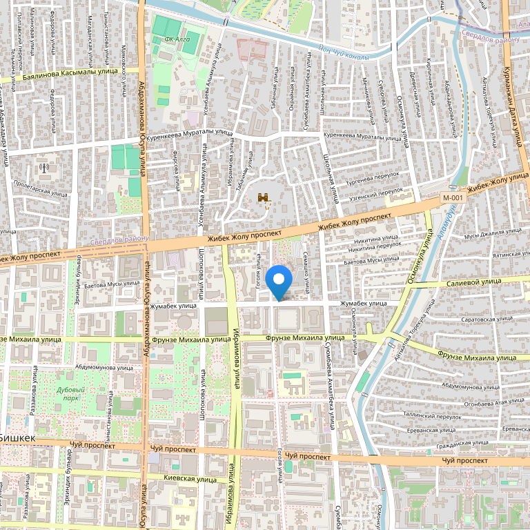 Отель расположен в бизнес и административном центре Бишкека в гостиничном комплексе Достук на 5 этаже. Расстояние от аэропорта – 25 км от отеля, 35 минут езды на автомобиле.