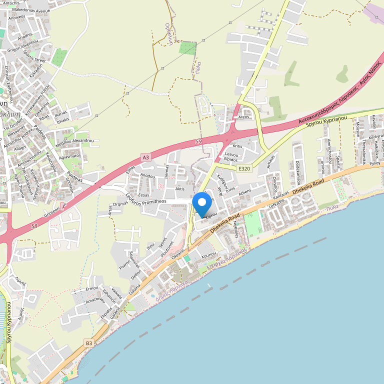 Отель Vergi расположен в городе Ларнака, всего в 150 м от моря, в 15 минутах езды от аэропорта и в 10 минутах от центра города, в окружении различных таверн, ресторанов, баров.