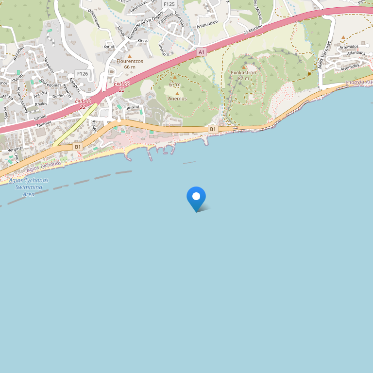городской пляж через дорогу. Можно пользоваться также пляжем отеля Amathus Beach 5*. Лежаки и зонтики за доп. плату.