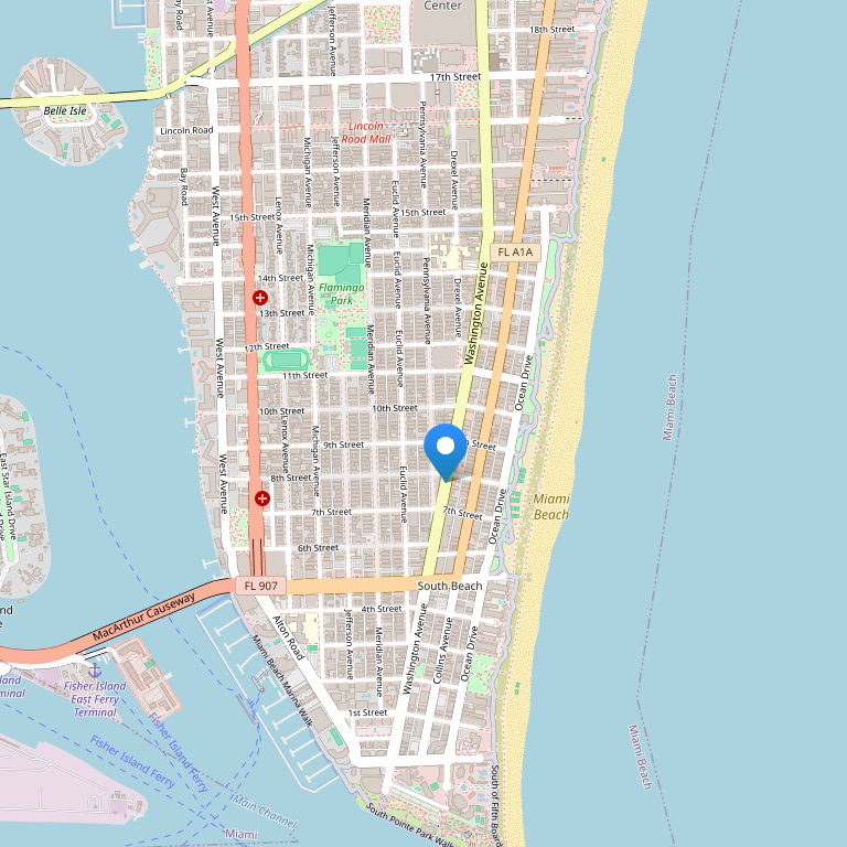 Отель расположен в Майами-Бич, в районе Саус-Бич Ар-Деко, в 10 минутах ходьбы от Ламмес-парка, пляжного парка и Атлантического океана, в 5 минутах ходьбы от улицы Ocean Drive, в 10 милях от международного аэропорта Майами, в 5 милях от центра Майми, в 26 милях от аэропорта Fort Lauderdale.