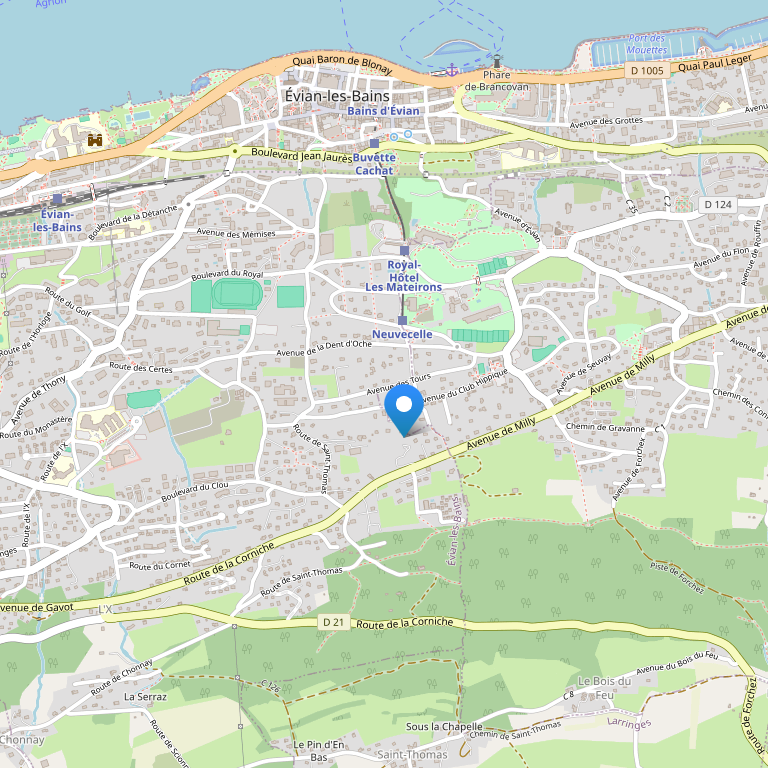 Отель расположен на горнолыжном курорте Эвиан, в северной части области Haute Savoie, на южном берегу Женевского Озера, в 17 км от аэропорта La Blécherette QLS, в 45 км от аэропорта Cointrin GVA, в 1 км от железнодорожного вокзала, в 8 км от лыжных склонов.