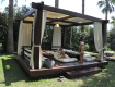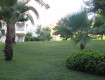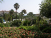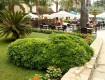Территория,не особо большая.Зеленая трава(такой газонной травы не встречал),пальмы,много цветущих растений.На деревьях таблички с их названиями.Много лежаков расположены в тени деревьев.Хорошее...