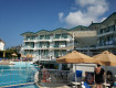 Территория отеля небольшая.Есть бар у бассейна,сам бассейн достаточно большой,небольшой танцпол и небольшая горка для детей.Также у бара стоят столики где можно пить коктейли и мы вечером...