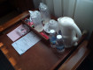 В номере есть все необходимое - чайный набор (кофе, сахар), чайник, фен, холодильник, кондиционер, душевые принадлежности, полотенца...