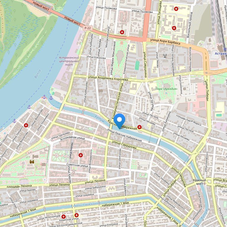 Отель расположен в исторической части города, на живописной набережной городского канала, в пяти минутах ходьбы от Астраханского Кремля. Дорога до аэропорта займет не более получаса, а до железнодорожного вокзала – не более 15 минут.