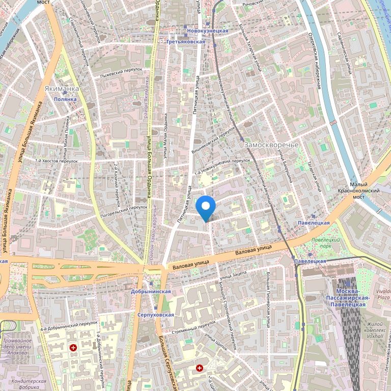 Район, в котором находится гостиница, весьма примечателен: это древнейшее Замоскворечье, история которого начинается аж в XIII веке. Когда-то здесь жили стрельцы, купцы и жители слобод, занимавшихся обеспечением царского двора, в XIX-XX веках в этом районе селилась интеллигенция, а в наши дни Замосковоречье считается одним из наиболее элитных районов, где находятся представительства компаний, банки, деловые центры, а также многие достопримечательности Москвы. Всего в 2 км находится Кремль, Центральный дом художника, Парк культуры и отдыха им. Горького, Третьяковская галерея. До железнодорожных вокзалов от отеля можно доехать в среднем за 10-15 минут. Ближайший аэропорт Домодедово.