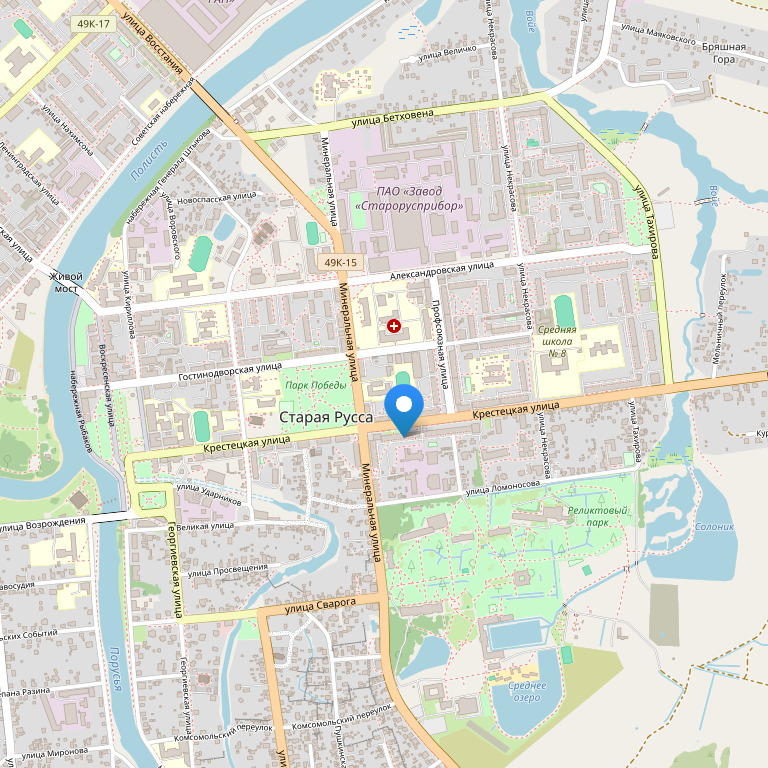 Отель расположен рядом со знаменитым водно-солевым курортом и Домом-музеем Ф.М. Достоевского. Недалеко от гостиницы находится Спасо-Преображенский монастырь XII века, Троицкая церковь и другие интересные памятники древнего зодчества.