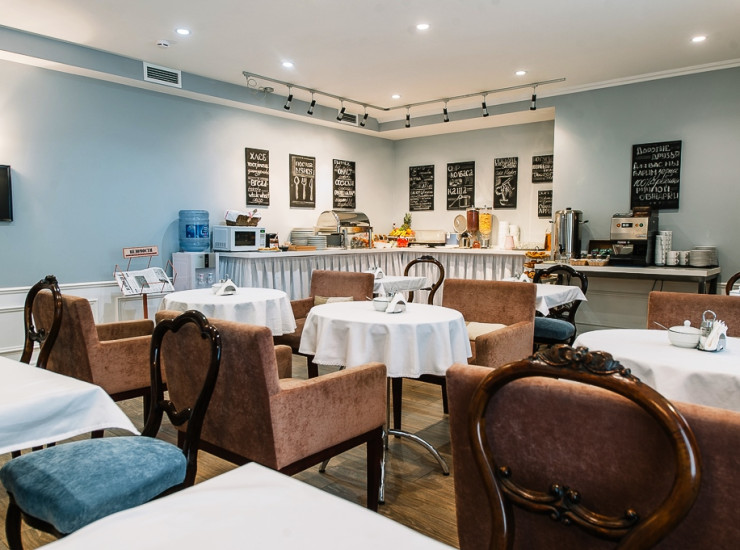 Кафе отеля Статский Советник пользуется у гостей особой популярностью утром для постояльцев накрыт Шведский стол на завтрак. В выходные дни шведский стол сервируется позже, поэтому гости могут не торопиться и позволить себе поспать немного дольше. Время работы: с 7:30 до 00:00 (завтрак с 7:30 до 10:30 по будням, с 8:00 до 11:00 по выходным)