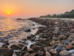 Пляж у блока Б маленький, море шумное, в воде камни