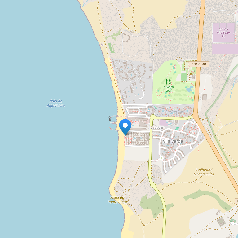 Роскошный отель расположен на острове Сал, в 20 минутах (18 км) от международного аэропорта Амилькар Кабрал ("SID") и 5 минутах от главного города острова - Санта-Мария.