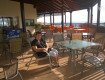 На балконе можно сидеть на пластиковых креслах за столом и пить вино,...