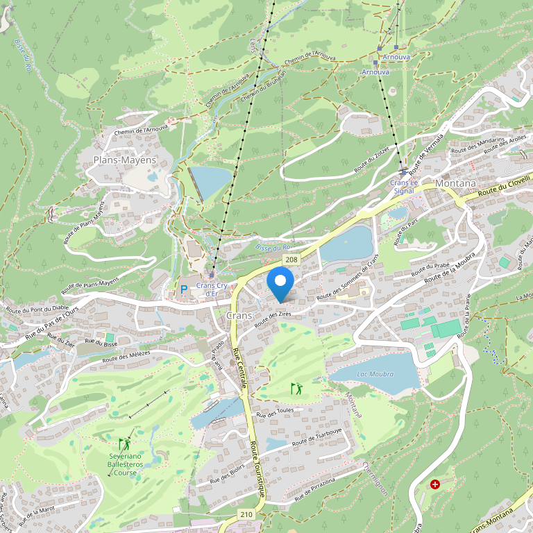 находится в центре провинции Кранс-Монтана, в нескольких шагах от станции фуникулера.