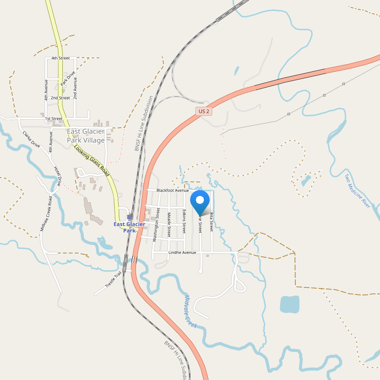 Отель Glacier Park Lodge расположен в маленьком городке Ист Глейшер Парк, на пересечении шоссе 2 и шоссе 49.