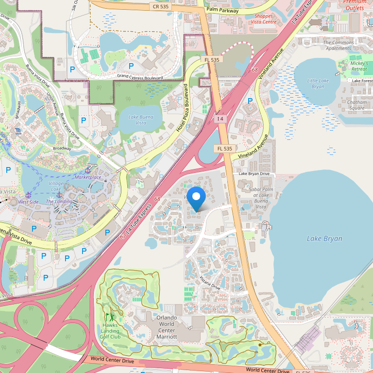 Отель находится на живописной территории площадью 23 акра, прямо напротив Downtown Disney Resort в Lake Buena Vista и является официальным партнером-отелем парка Walt Disney World. Его гостям предлагается множество услуг, в том числе бесплатный трансфер до Magic Kingdom Park, Disney's Animal Kingdom Theme Park, Disney's Hollywood Studios, Epcot, Disney's Typhoon Lagoon Water Park и Disney's Blizzard Beach Water Park. К услугам гостей также имеются несколько ресторанов на любой вкус, включая Benihana Japanese Steak House, Andiamo Italian Bistro and Grille и круглосуточное кафе Marketplace. Все самые известные развлекательные тематические парки - Magic Kingdom Park, Disney's Animal Kingdom Theme Park, Disney's Hollywood Studios, Epcot, Disney’s Typhoon Lagoon Water Park и Disney’s Blizzard Beach Water Park находятся буквально в нескольких шагах. Другие местные достопримечательности, такие как Orlando/Orange County Convention Center, SeaWorld, Universal Studios, Kennedy Space Center, пляжи Daytona, Cocoa и Clearwater Beach и торговые цены Orlando Premium Outlets