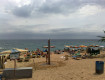 Пляж общий,мелкая галька, лежаки и зонты 5EUR, теперь в прокат дают полотенце для пляжа, на рецепции под залог.