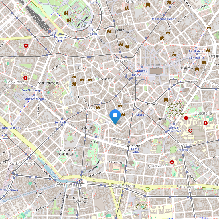 Поблизости от деловых и торговых районов Милана. 5 минут пешком до станции метро Missori, 2 минуты пешком до станции метро Crocetta.