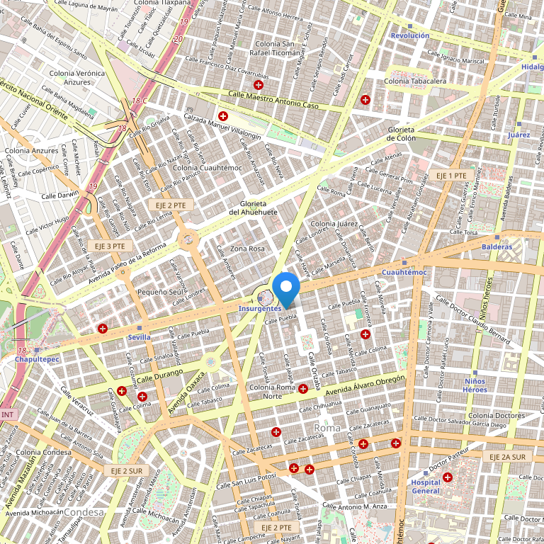 Отель выгодно расположен в Зона Роса – самом шумном и веселом районе Мехико, который знаменит своими ночными клубами, роскошными магазинами, ресторанами и музеями, рядом с историческим центром столицы.