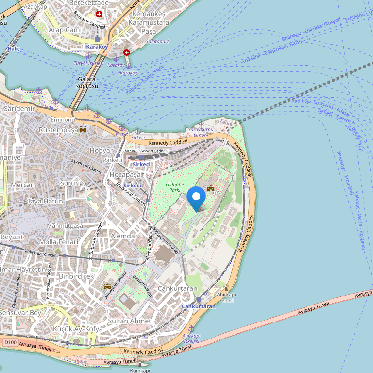 Отель расположен в районе Стамбула Султанахмет, всего в 500 метрах от собора Святой Софии и в 300 метрах от железнодорожного вокзала Сиркеджи. Рядом с отелем находится трамвайная остановка Gülhane. От дворца Топкапы отель отделяет только парк Гюльхане.