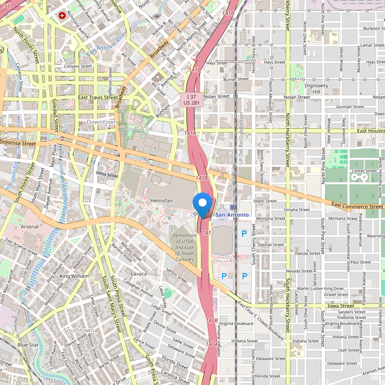 находится в центре Сан-Антонио, напротив San Antonio Convention Center, из окон открывается вид на набережную.